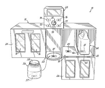 The Examining Division refused the application for lack of inventive step in view of the prior‑art document D5 (US 2010/0024915 A1). D5 discloses an RFID‑controlled chemical dispensing system in which RFID tags on chemical source containers and receiving containers are checked for compatibility before a solenoid‑operated diluent valve is opened to dispense the selected diluted chemical.